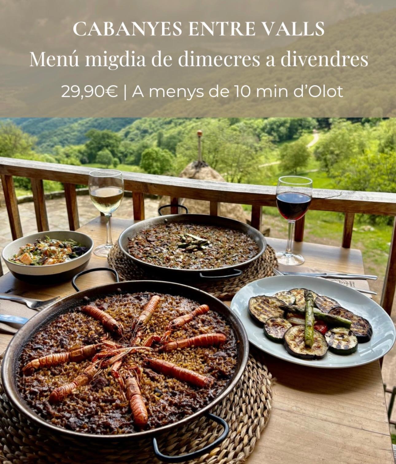 Cabanyes entre valls, a més a més de disposar de cabanes als arbres amb jacuzzi situades en una finca amb vistes panoràmiques, a la primera planta de la zona comuna, hi trobareu el menjador, on antigament hi havia la pallissa, lloc que s’utilitzava per assecar els farratges. Gràcies a les àmplies obertures, actualment podem gaudir d’unes vistes espectaculars de tota la vall.
